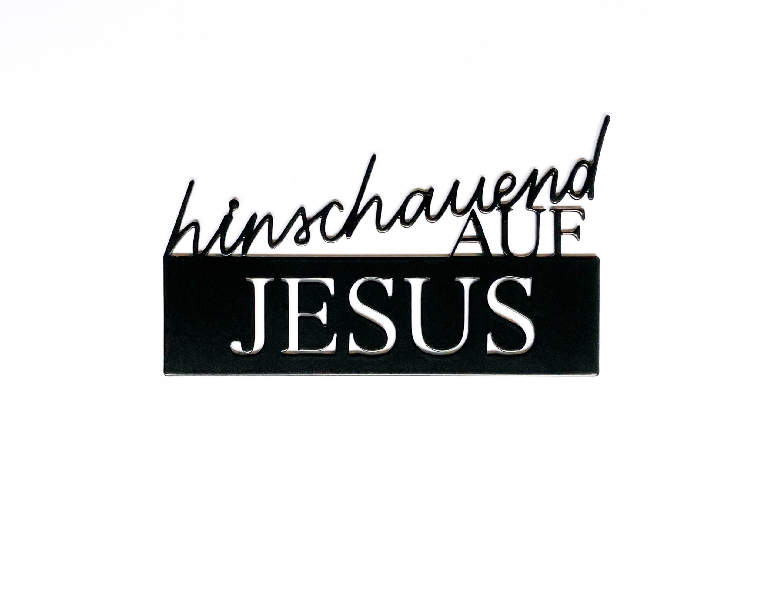 „hinschauend auf Jesus“ ist ein Bibelvers und als Metallschriftzug für eine christlich motivierende Deko und als Geschenkidee gedacht.
